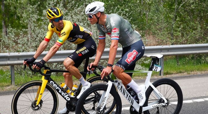 Voor Jumbo-Visma was er maar 1 opdracht, erop de klim bijblijven en met Tom, Tobias en Sam geen tijd verliezen. Uiteindelijk werd er gesprint tussen Mathieu van der Poel en Biniam Grmay, ging Caleb Ewan vlak voor de finish tegen de vlakte en mocht de Nederlander zijn handen in de lucht gooien. Aan de voet van de klim kwam Tobias nog achter een val te zitten maar Affini bracht hem nog voor de finish weer terug in het voorste deel van het peloton Het trio van Jumbo-Visma en ook nog Koen Bouwman kwamen wel op een klein gaatje te zitten en verloren uiteindelijk een 4-tal seconden. Met de tijdrit van morgen is er in ieder geval nog van alles mogelijk en is er dus een serieuze kans op het roze voor 1 van de specialisten van Jumbo-Visma.