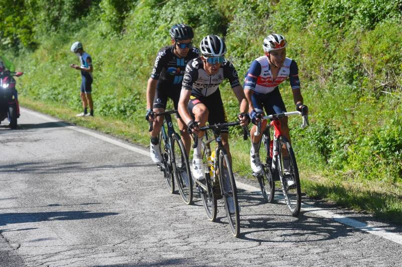 As they headed to the finale whatever had transpired between Bennett and Brambilla had done for their chances of victory: with Vendrame and Hamilton ten seconds up, the road ran out. Vendrame was the better man in the final few hundred metres and took the stage victory, the first for AG2R Citroen, and George finally crossed the line in fourth place, gesturing furiously at Brambilla who cut across his line at the finish.