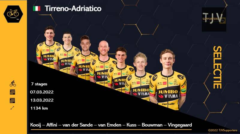 Dit jaar is de Tirreno-Adriatico toe aan de 57e editie. Het is een Italiaanse koers die, zoals de naam al doet vermoeden, uitgestippeld is tussen de Tyrreense Zee en de Adriatische Zee. Roger de Vlaeminck is recordhouder met het aantal eindzeges. In de jaren ’70 heerste hij in Italie door zes edities op rij op zijn naam te schrijven. Namens Jumbo-Visma/Rabobank kon er vier keer gejuicht worden: Erik Dekker in 2002, Oscar Freire in 2005, Thomas Dekker in 2006 en drie jaar geleden won Primoz Roglic.