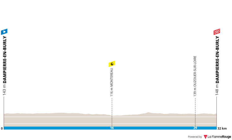 100km, dan 2 klimmetjes en tenslotte 40km licht bergafwaarts naar de finish. Had ik het al