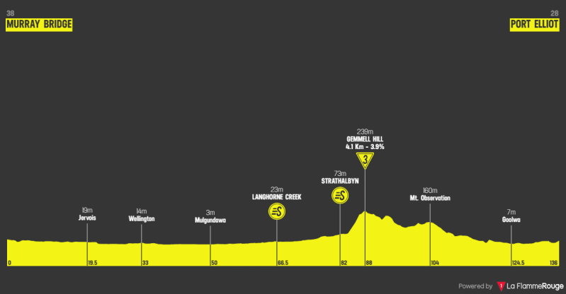 Gemmell Hill (3rd Category, 239 m, 4.1 Km at 3.8%, Km 88.3)