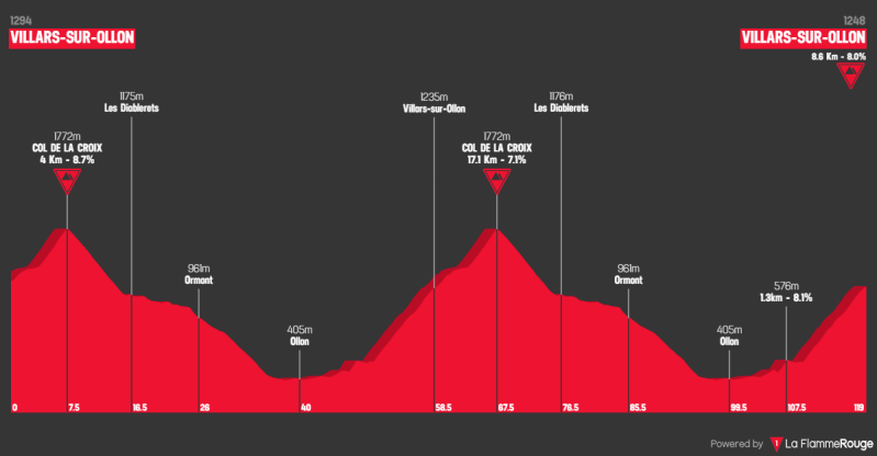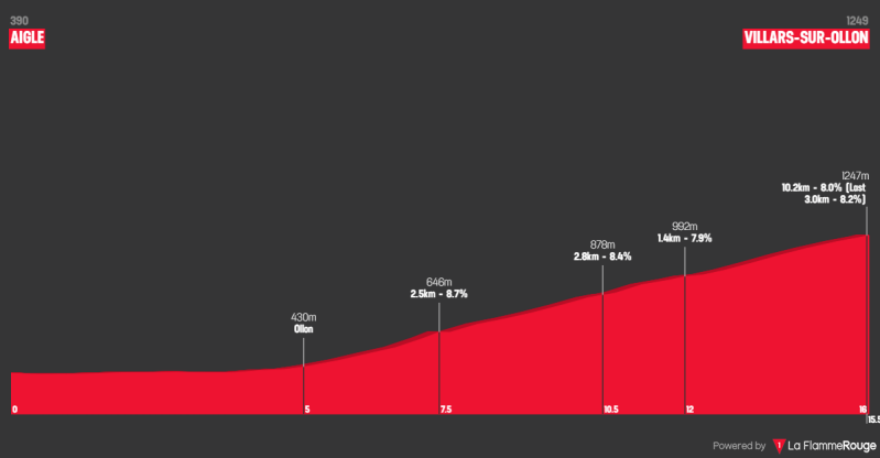 Villars-sur-Ollon (1245 m, 8.6 Km at 7.9%, Arrive)